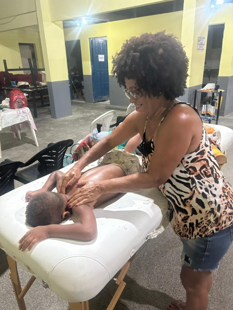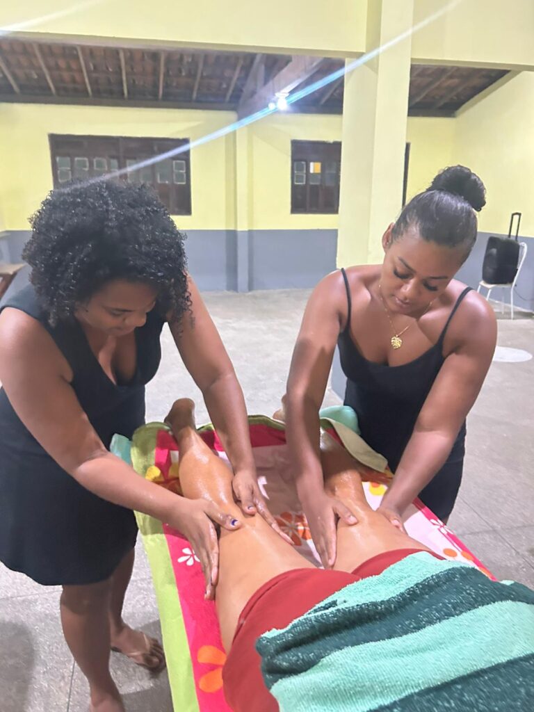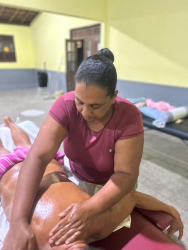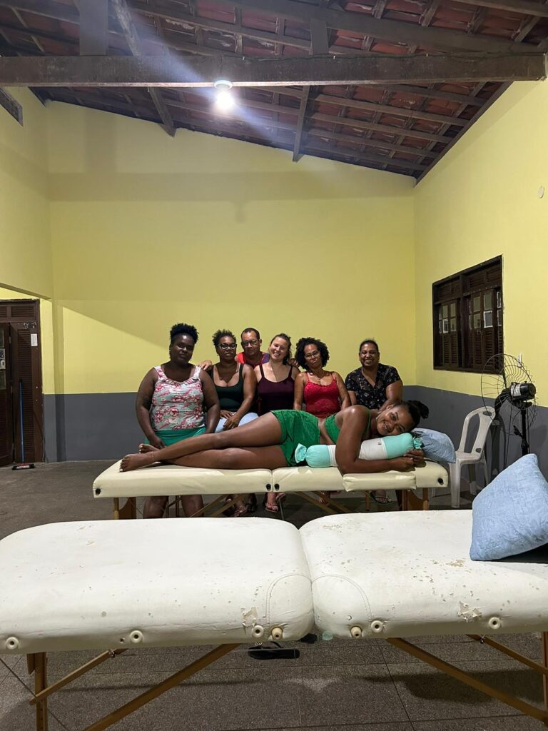 Construit ainsi en collaboration avec une association locale de résidents, il visait ainsi à transmettre un savoir manuel professionnalisant à des femmes du quartier, tout en intégrant des dimensions de développement de compétences, d’estime de soi et de pouvoir d’agir. Ainsi, pendant quatre semaines, j’ai transmis le massage relaxant classique que je pratique à cinq femmes du quartier de Santa Luzia do Lobato dans une démarche à la fois professionnelle, humaine et respectueuse de réalités sociales et culturelles du territoire. Ce projet m’a également ouvert des pistes de réflexion sur la place du toucher et du soin comme outils d’autonomisation et de transformation personnelle et sociale.